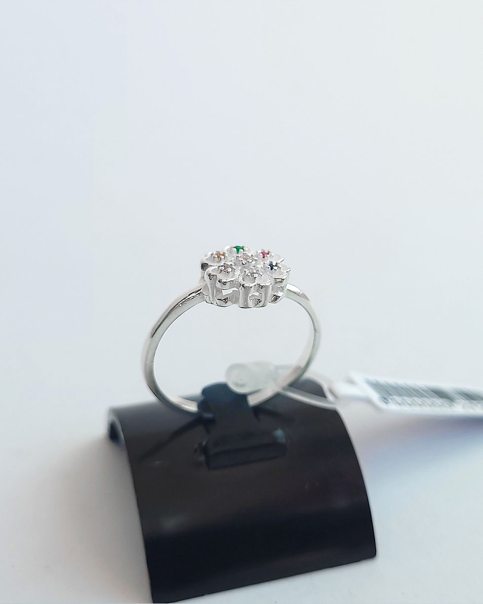 Anel prata flor colorida (Pague em 12x)
