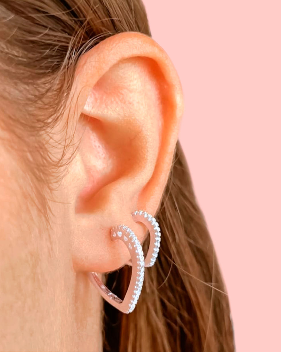 Dupla brincos argola de prata formato coração (Pague em 12x)